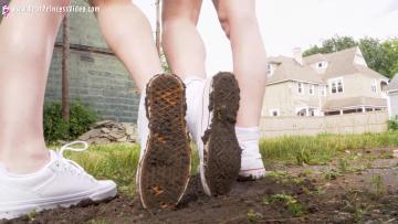 Honey and May - Extreme Muddy Sneaker Licking with Mud Eating PART 1